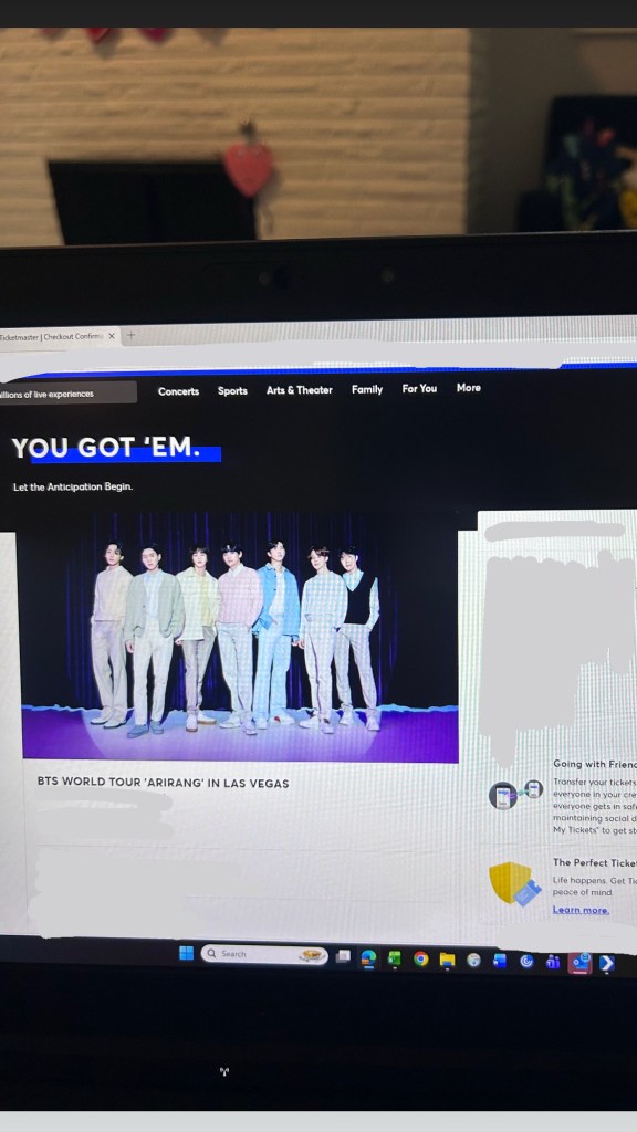 This was my first BTS ticketing experience since Joey surprised me with tickets in 2022 and WHEW, what a rush!!! Scoring those Las Vegas concert tickets was one of the most satisfying moments of my life š Shortly after the kids got home, we headed out to Tumble Haus to hang with the other kids and parents from Dempsey’s school. The kids seriously had so much fun, we’ll definitely be going back! After, we invited my sis and Wayne to meet us at Fire on the Mountain and on the way I got an alert that another show had been added to the tour! Jumped in the queue right then and there and scored tickets to that show too! We had a good fun dinner then headed home and got the kids to bed. Joey was checking ticket prices on Stub Hub and we saw some really reasonably priced ones way closer to the stage, so he got ’em and our plan is to re-sell the two sets I bought to pay for the good seats. Whew!