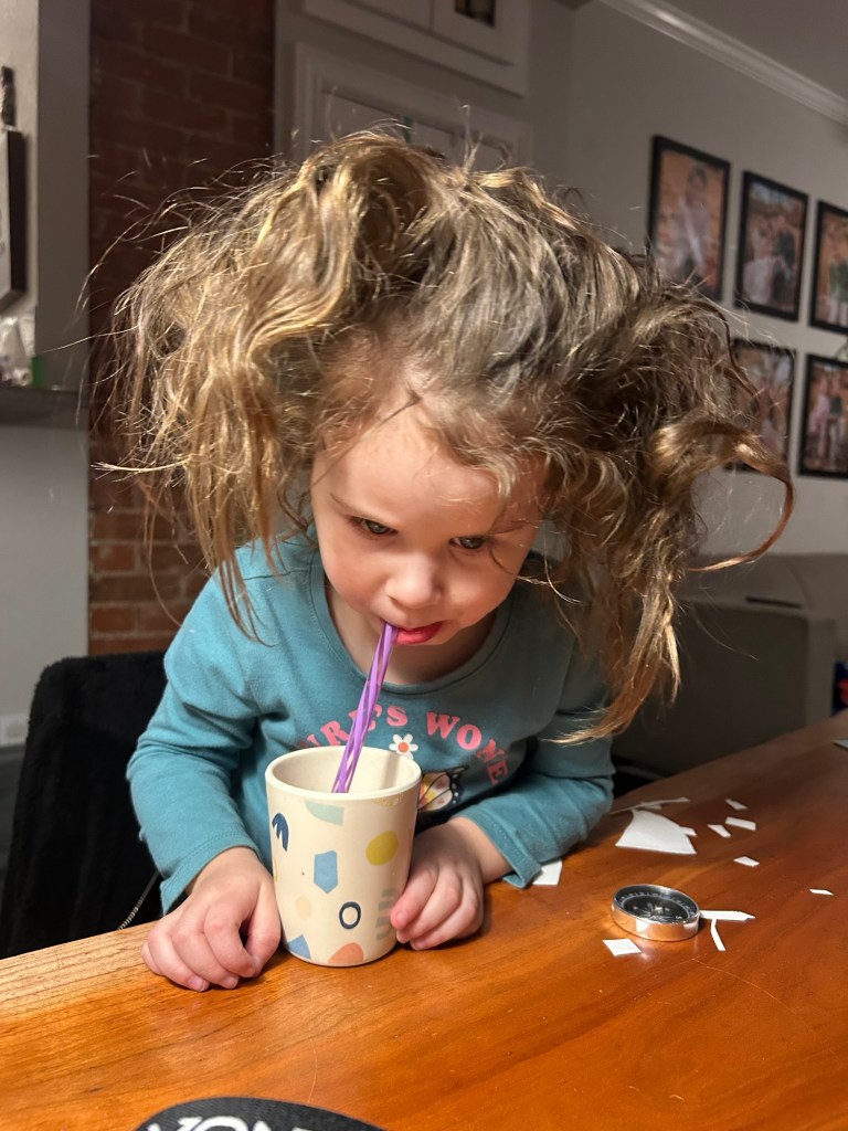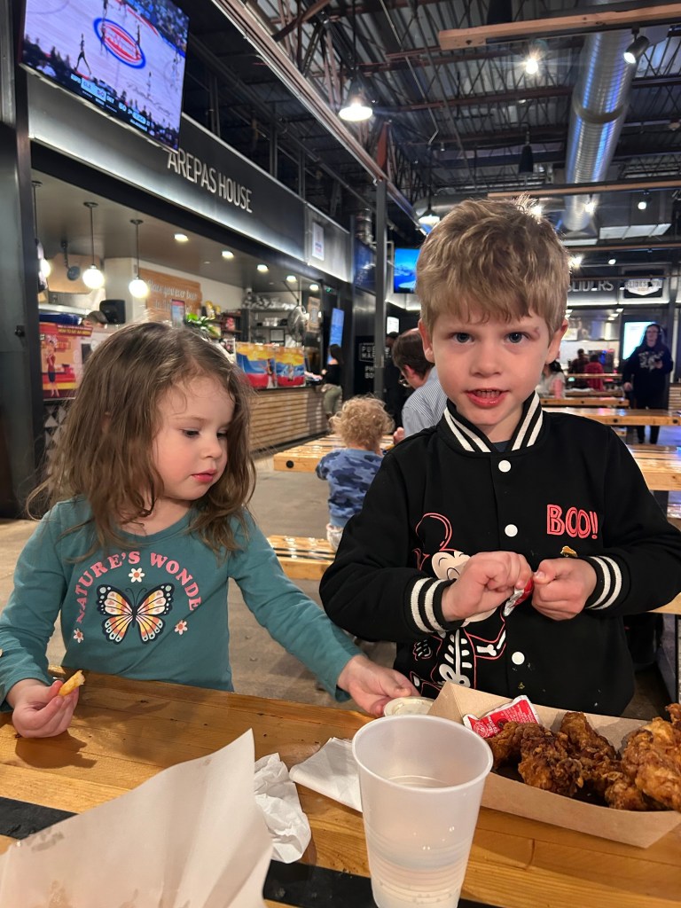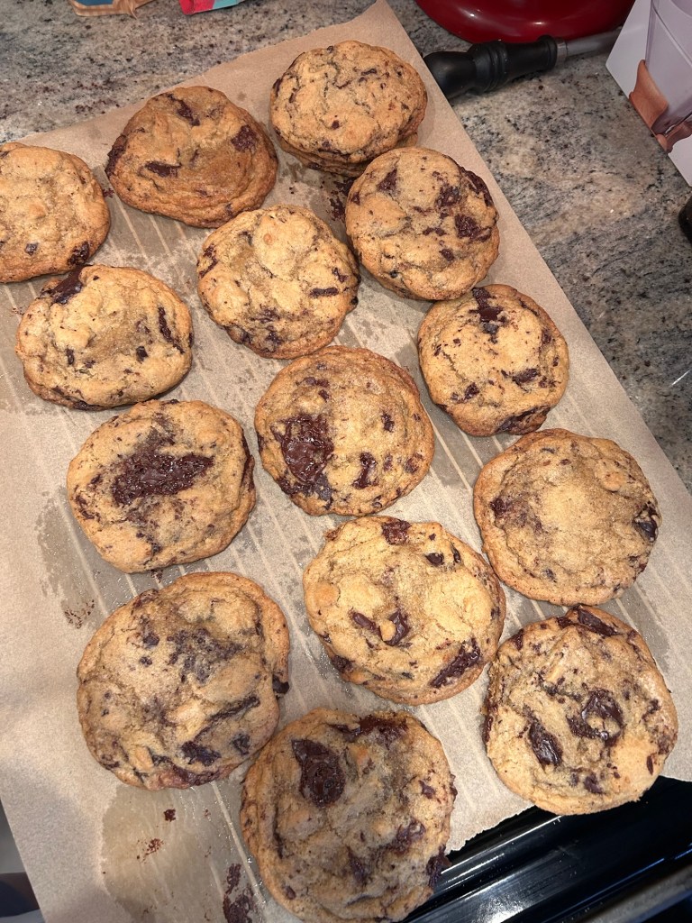 Friday, I dropped Dempsey off at school then worked from home and made some sourdough chocolate chip cookies. Got to pick my boy up and walk home with him, then we each ate a cookie and headed to pick Lydia up at Lori’s. I couldn’t necessarily taste that they were sourdough but I just love a cookie. Picked up Joey and headed straight to Edgewater Public Market for dinner. We hadn’t been in so long! The kids were moderately-well behaved, so they got to get candy out of the gumball machine πŸ˜‰ Got them into bed and started Sentimental Value but more on that later.