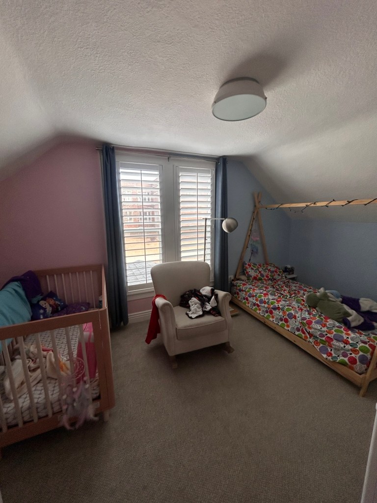 Sunday started off on a weird foot. Lydia woke up and spent the rest of the night in our bed, so when she popped up shortly after 6 AM, I told Joey I’d pay him $100 to go downstairs with her so I could sleep a little longer. After breakfast, Joey and I snuck upstairs to look over their room and I really love how the colors turned out. We did realize, however, that the only way two twin-size beds will fit in here is if we lose the top part of Dempsey’s bed and put them side by side the opposite direction of how we’ve painted it πŸ˜…πŸ˜… I guess we will deal with that once we bite the bullet and buy Lydia a big girl bed, but I’m holding off as long as possible!