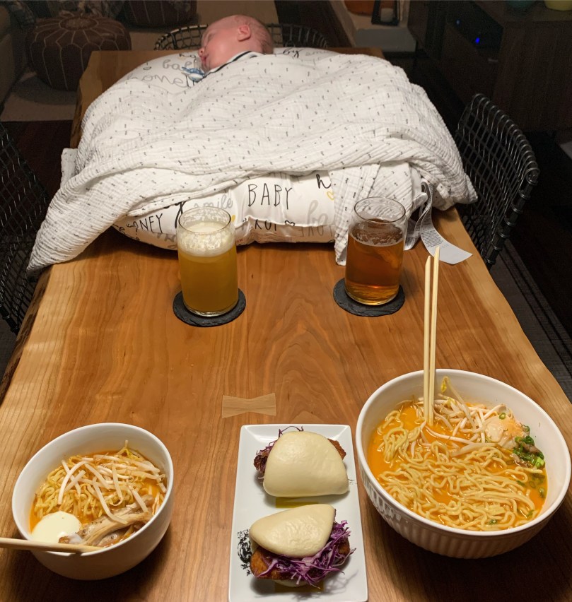 I mean, we were probably going to get take out this year regardless of restaurants being open to indoor dining or not. Uncle doesn’t seem like the easiest place to bring a baby. And I could finally enjoy a bowl of ramen without having to fish out the egg and sprouts. My first full beer too!