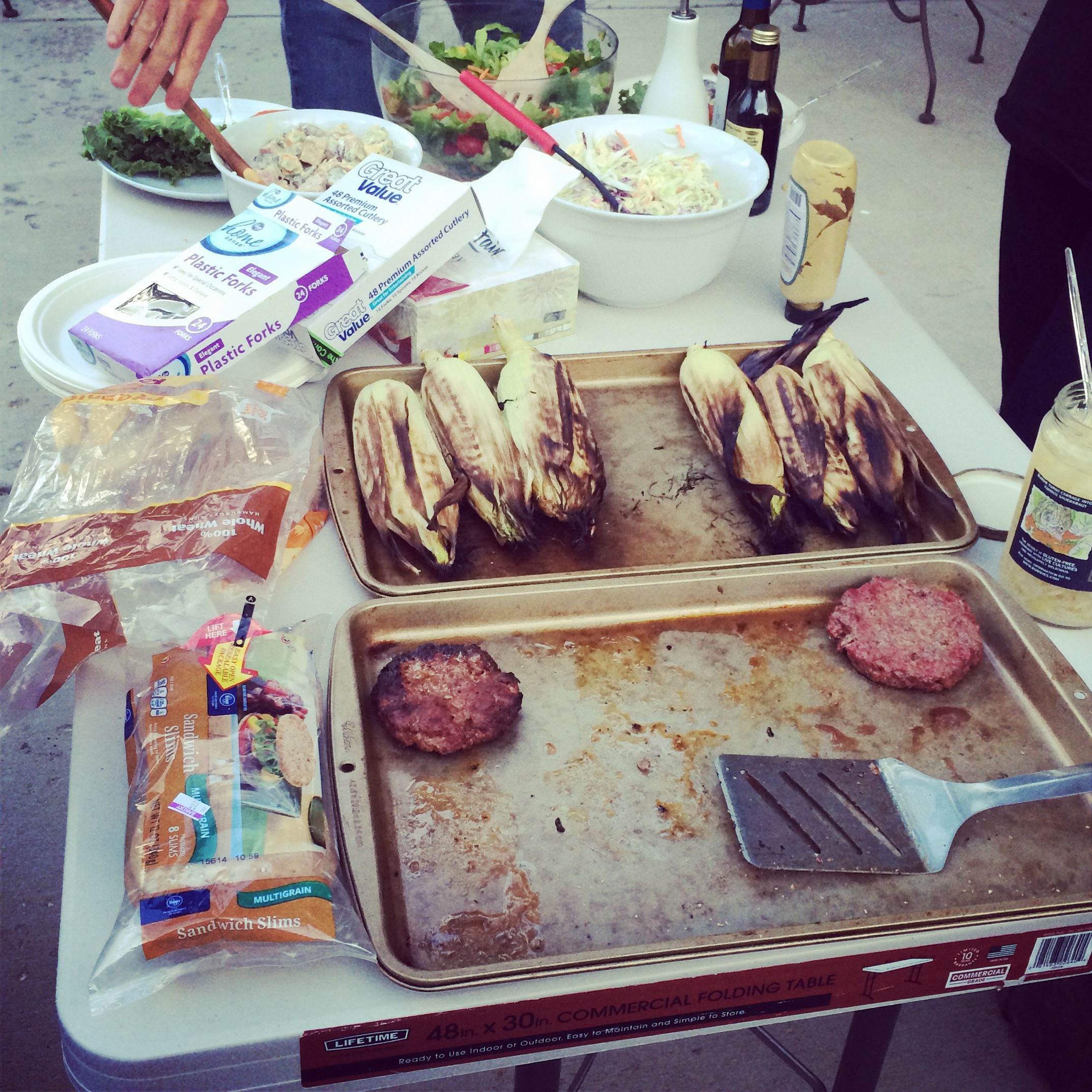 We ended the night with a little BBQ. I was pretty impressed that we threw the whole thing together so quickly and with very little ahead of time planning. Spontaneity is so not my middle name. Bean brought the burgers, Mom brought salad and appetizers, Hannah and Josh brought the beer and we supplied the corn, grill and back yard. Plus the fire pit and the smores! I think we might be turning into good BBQ hosts.
