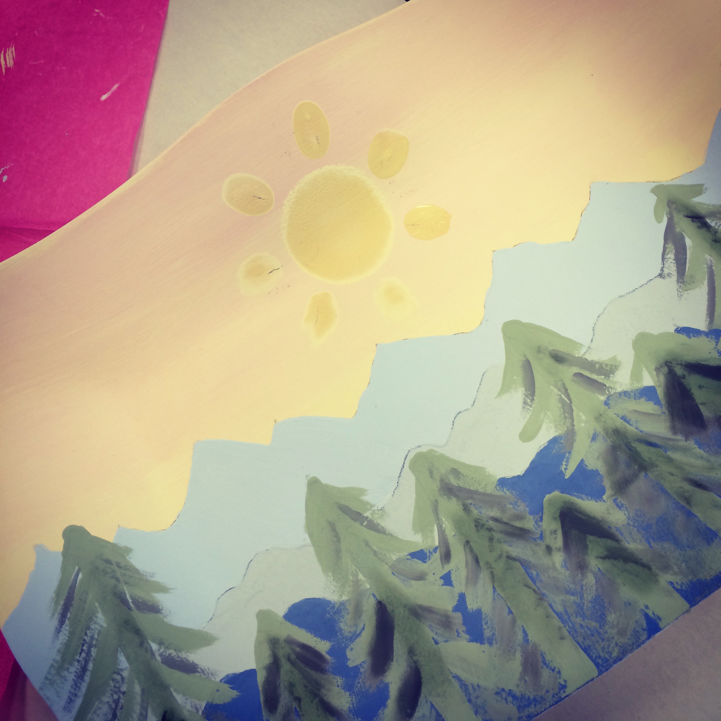 Our last girls-only activity of the day was to this cute little ceramic/canvas painting studio, where wine was purchased (duh) and some super cute things were painted. Hannah did that mountain landscape on a plate then had each of us girls put our finger print as one of the rays of sunshine. Seriously, how cool of an idea is that?! She is the cutest. The boys happened to ride by while on their bike bus tour so we all went out to see. I hear that thing is harder to peddle on than you’d think.