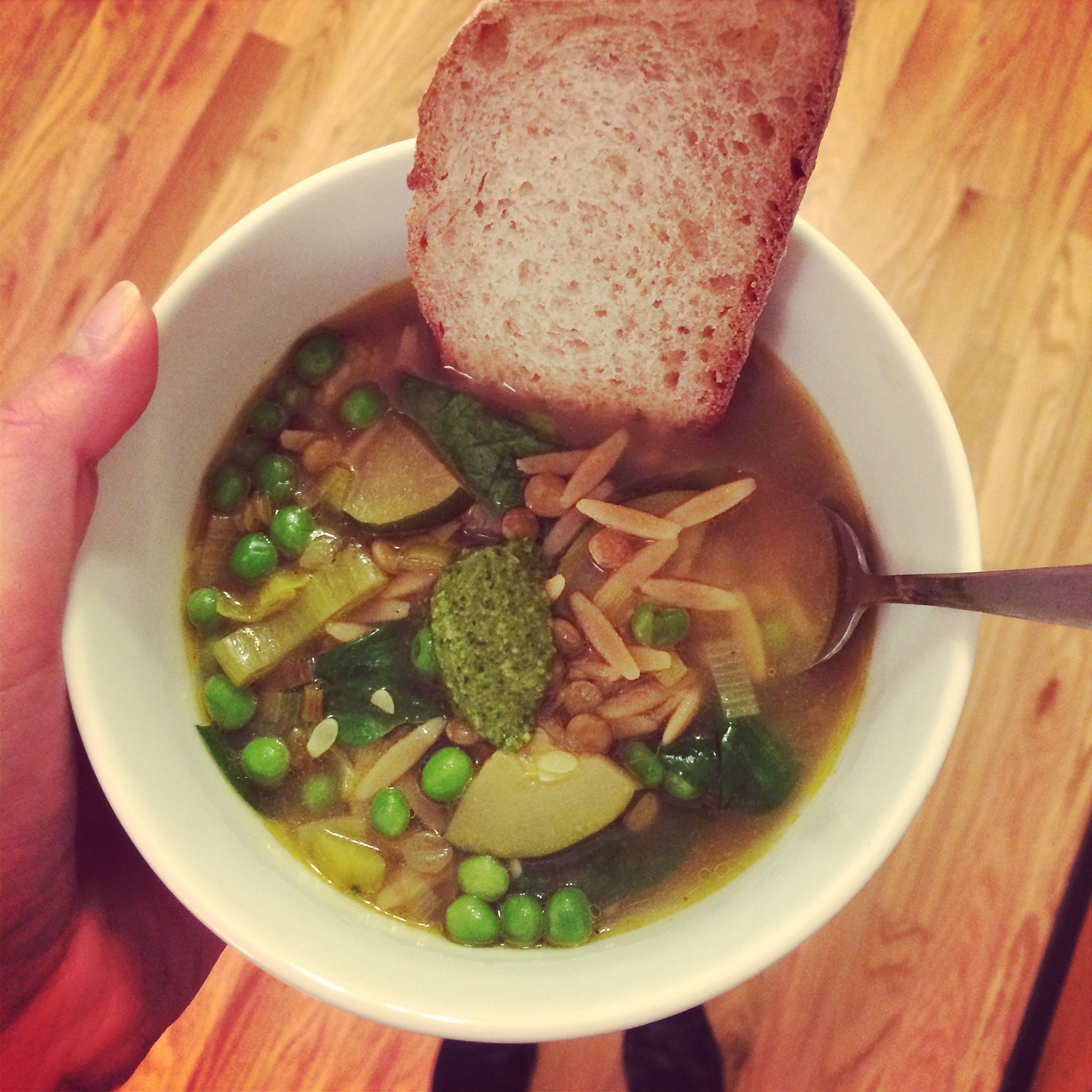 Soup season is the best season. I made this one night when we got home late and needed something quick to put together for dinner. I think this took all of 30 minutes and the flavor was awesome! I added some green lentils because what’s minestrone without some kind of legume and because they fit the whole verde thing. Best part: this soup got better and better every day.