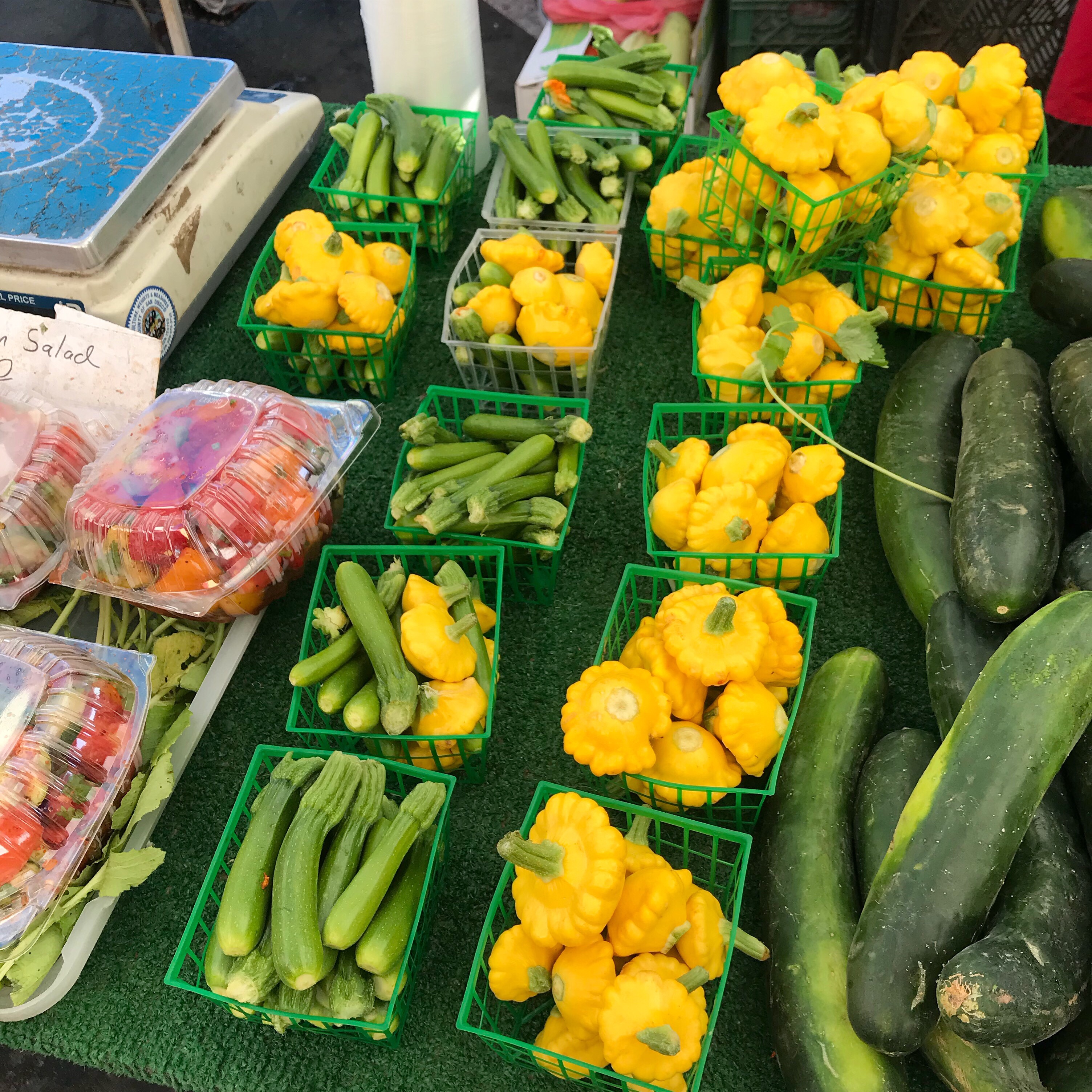 Got checked in and semi-unpacked before walking just a couple of blocks up to the Ocean Beach Farmers’ Market which was HOPPIN’ and even though we bought the prettiest bouquet from the friendliest vendor and the teensy squash were too cute for words, it was all a little much for me.