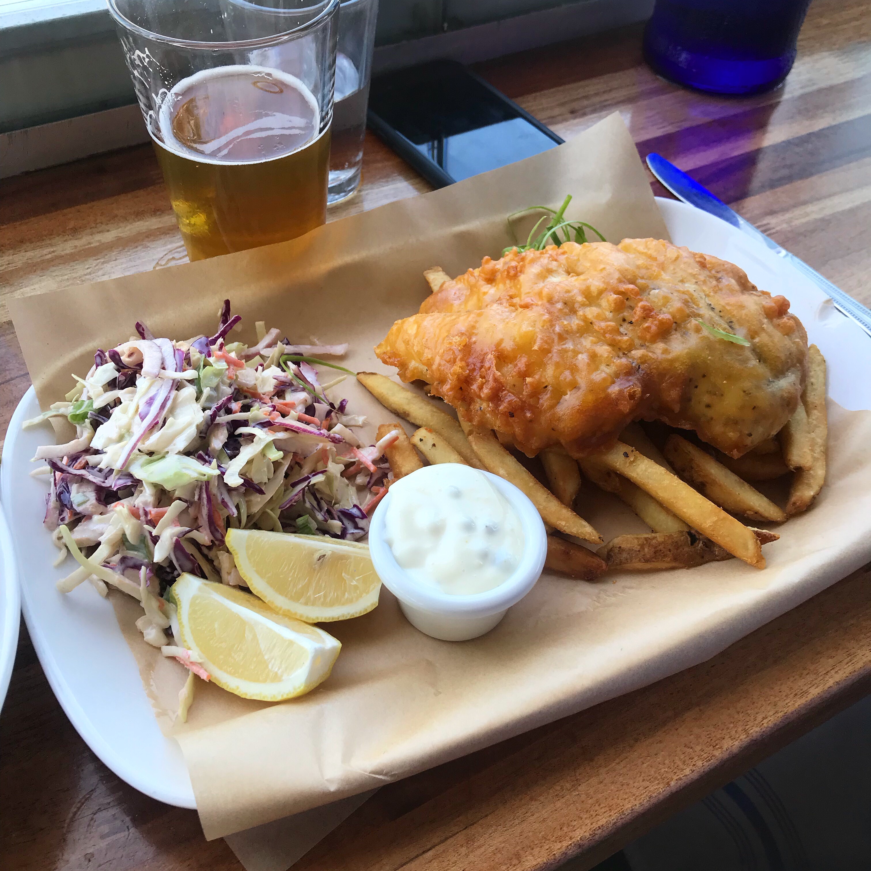 Slept in the next day and did some casual beach strolling and deck reading before grabbing lunch at Wonderland Ocean Pub, which was just at the end of our street. It had an upper deck with giant windows opening out to the beach and probably a spectacular sunset view, but we got a good view of a homeless man dancing in the grass instead 🙂