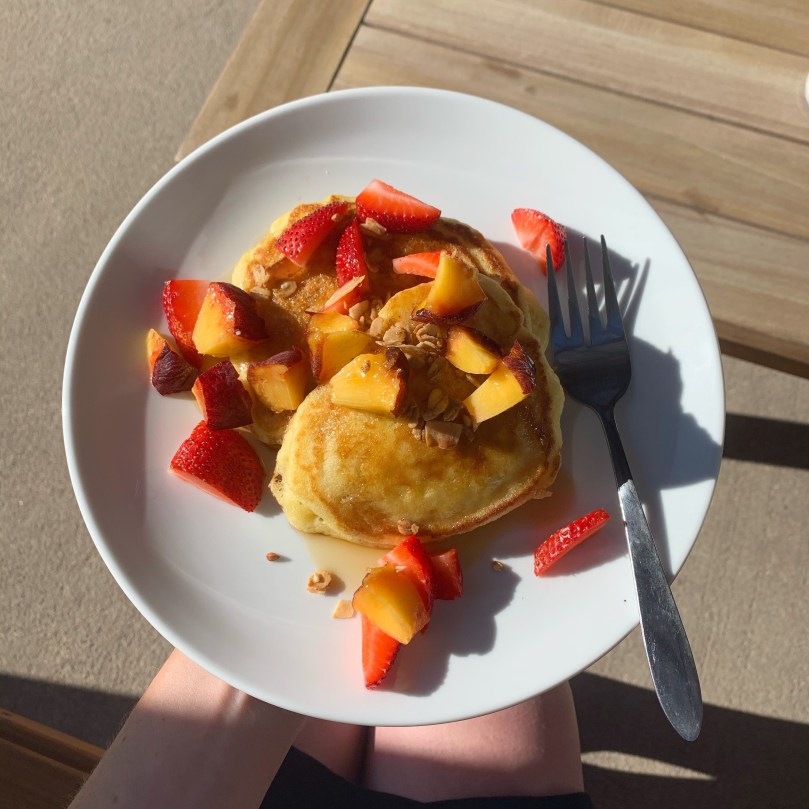 Undercooked eggs (and just undercooked things in general) are a no when you’re pregnant but I asked my OB and she said eggs were fine just as long as they were pasteurized and thank god because Eggs Benedict sounded so good! We ordered from Snooze and it HIT THE SPOT! Plus that sweet potato pancake is just my favorite.