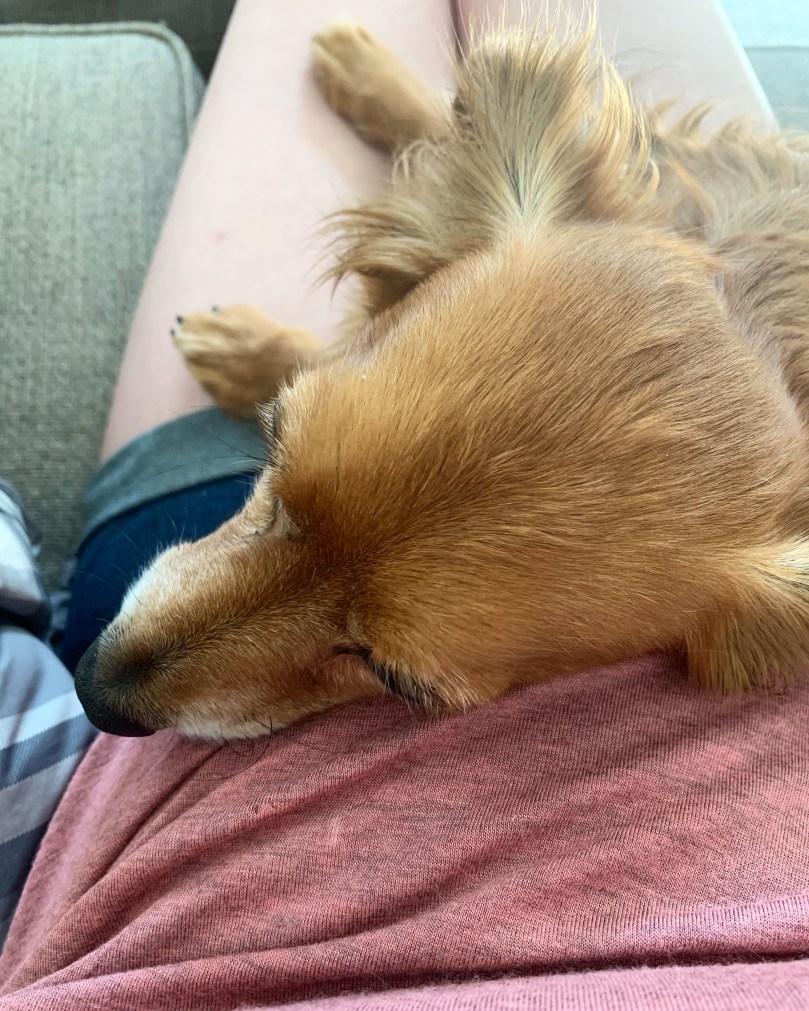 I got a Saturday morning snuggle from this sweet pup! 95% of the time, if Joey gets up before me, Andi will go downstairs with him and never return, so I was elated when he bounded back into our room after Joey left for a run. He didn’t even wake up when Joey came back inside!