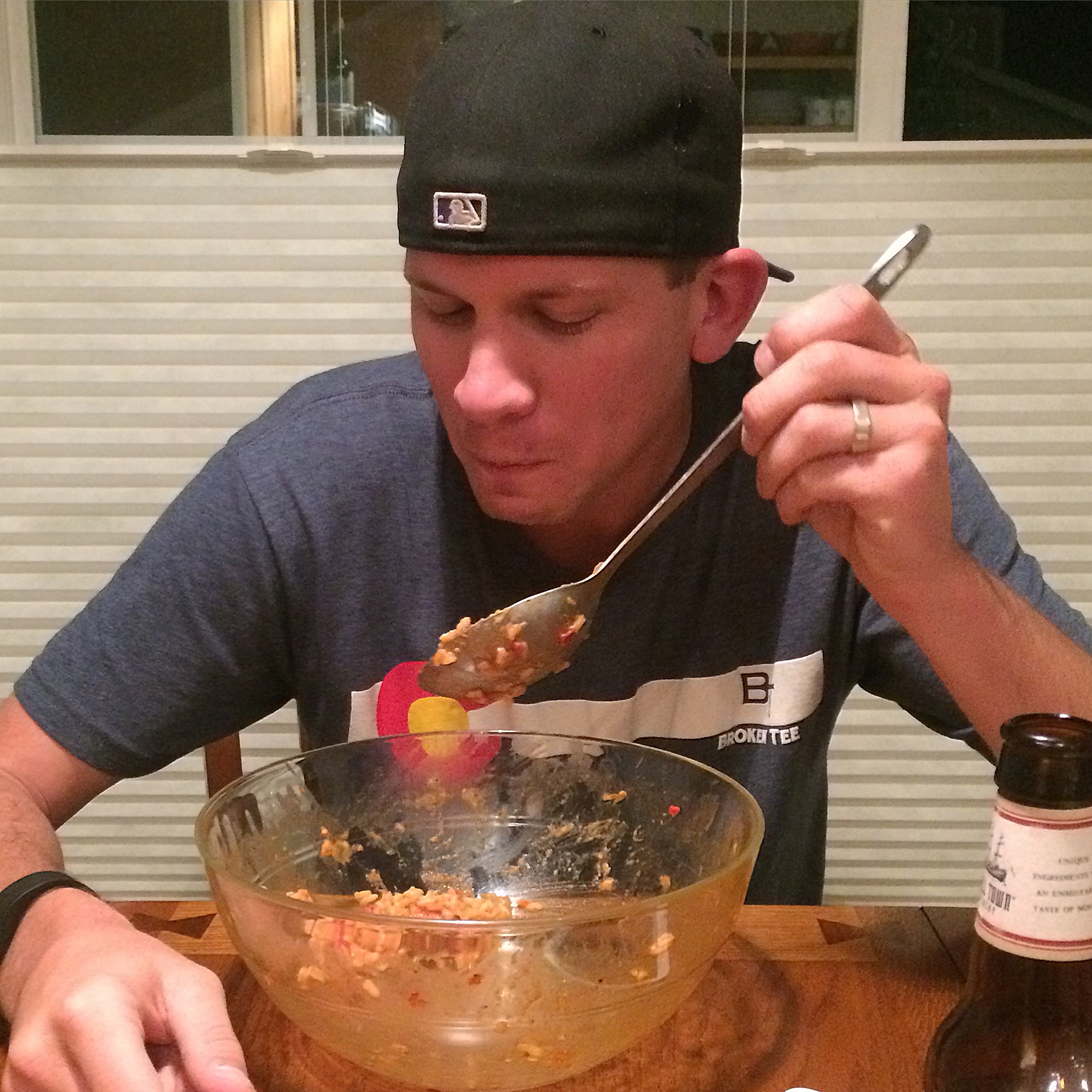 And it’s so good with spicy food. I had it last week with curry and then my mom made jambalaya and they went together perfectly. It’s like she knew! The four of us almost killed the giant bowl of jambalaya, but there was a little bit left in the bowl which Joey volunteered to finish off, just straight from the bowl with the serving spoon. I married this.