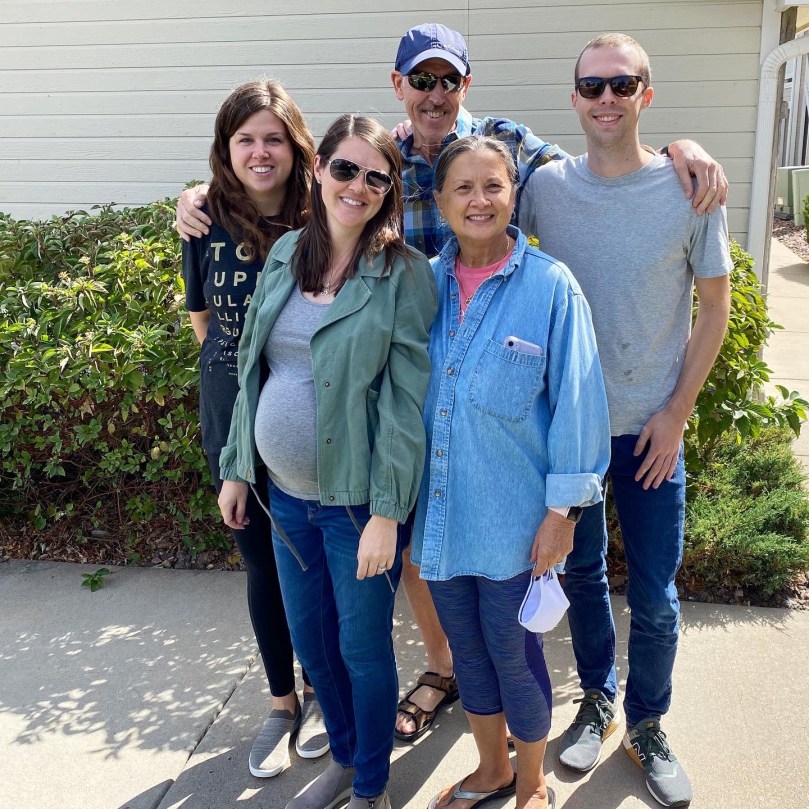 Sunday was the best day! Firstly, we didn’t have to decide what to have for breakfast because we were headed to my parents’ for John Legend’s breakfast sandwiches + hashbrowns by Mom ❤ She pasteurized eggs for me, can you believe it?? Afterward, we FaceTimed my uncle in New Orleans and got to chat for a good bit! Joey, my mom, my sis and I all walked over to the grocery store so Joey and I could grab mums and pumpkins and then, since Joey and I are putting ourselves into quarantine this week, I made my family take one last picture with pregnant me. The next time they see me in person, we’ll have a baby!!! Whoa, that is surreal to think/say!