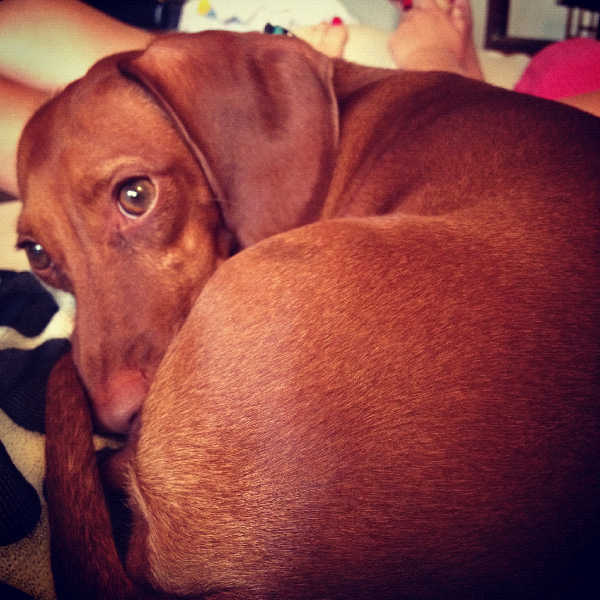 As in Andouille sausage.   A little friend for Huni.  And also, I obnoxious barker.